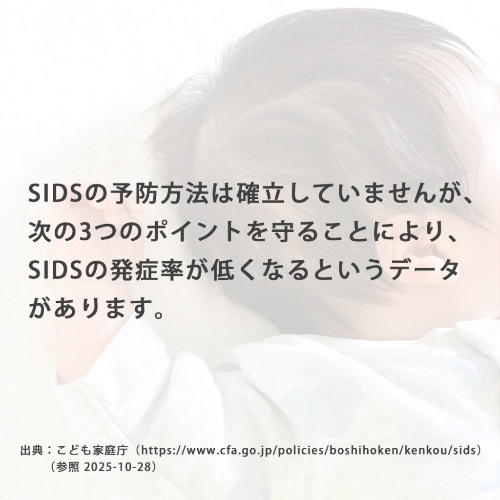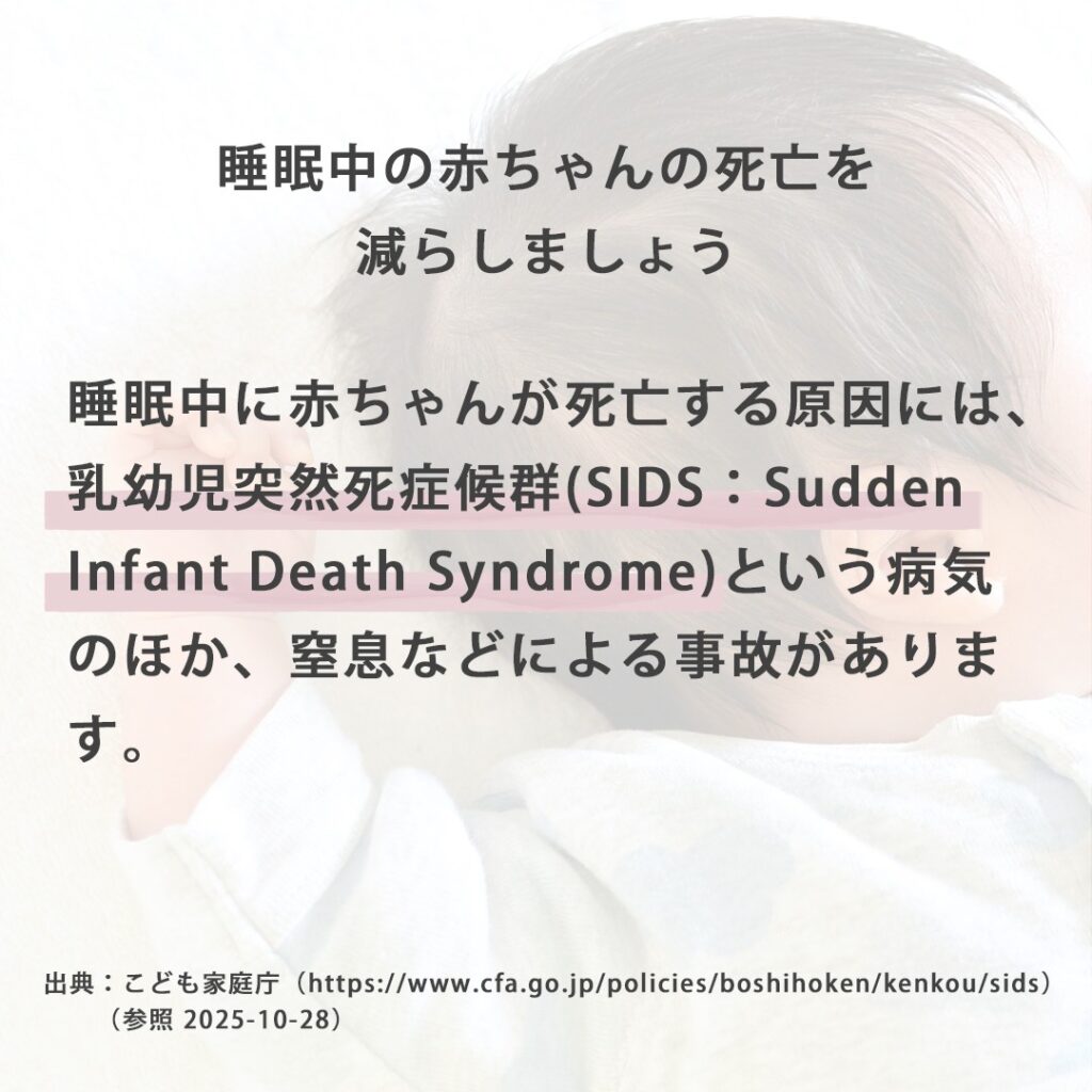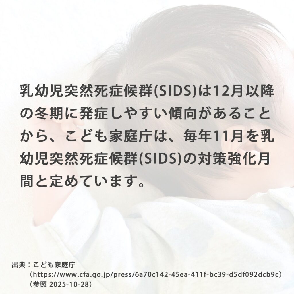 こども家庭庁は、毎年11月を乳幼児突然死症候群(SIDS)の対策強化月間と定めています。