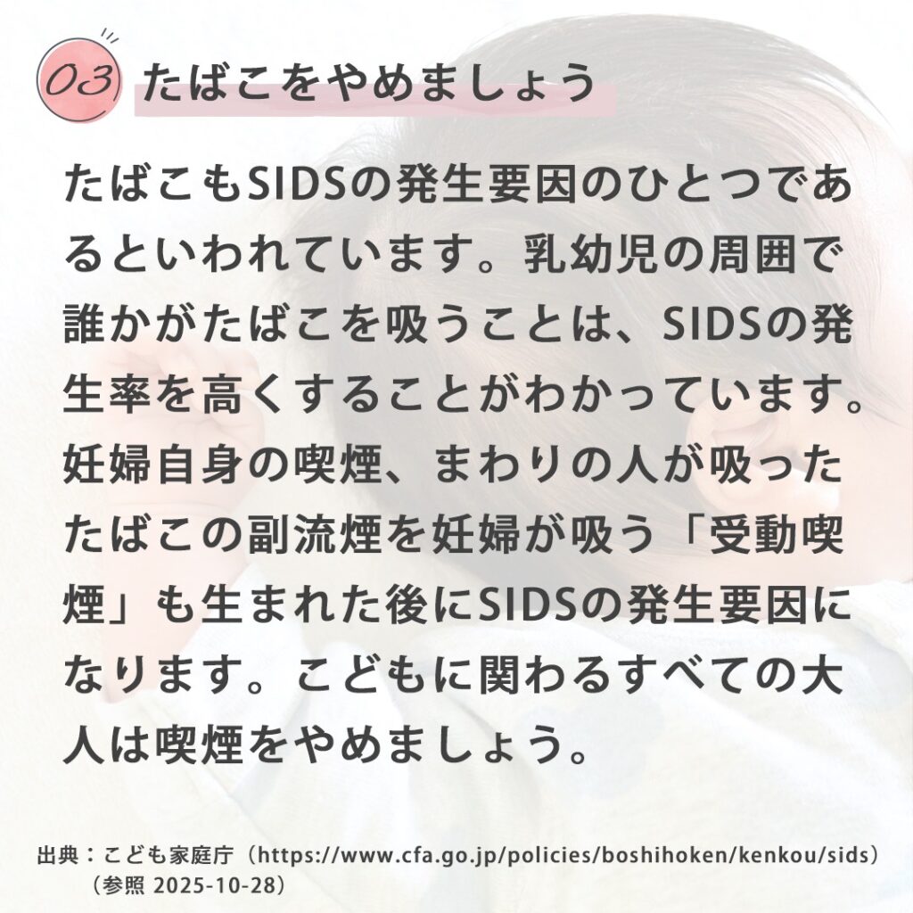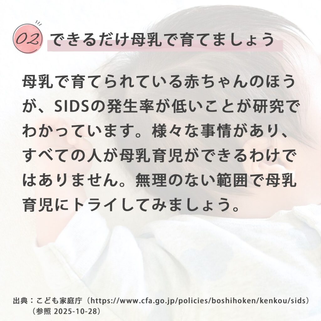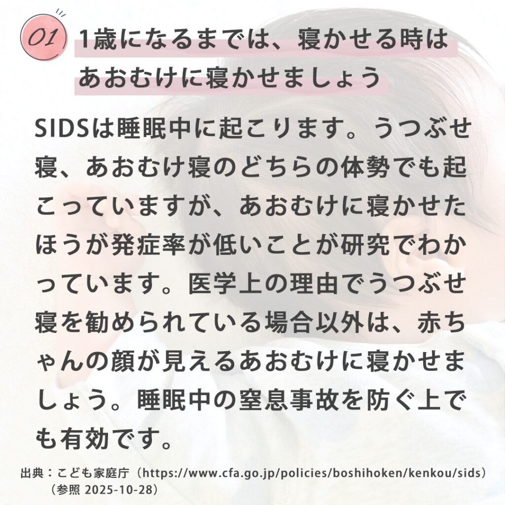 こども家庭庁は、毎年11月を乳幼児突然死症候群(SIDS)の対策強化月間と定めています。
